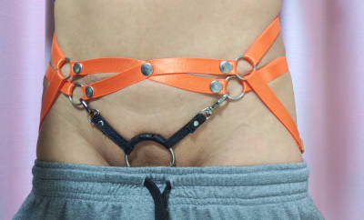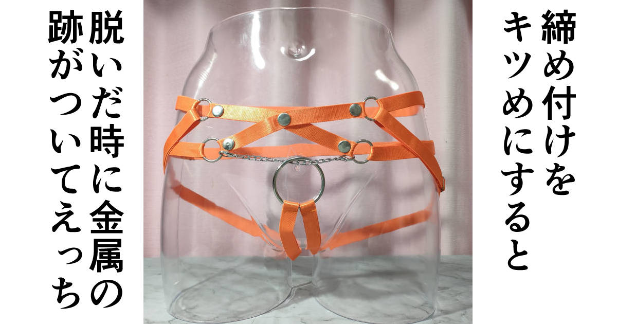 締め付けを調整できるので、少しきつめにしています。そうすると脱ぐと金属の跡がついてえっちです。