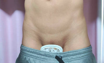 カメラを向けたらちん〇ん大きくなってしまって、ズボンで抑えていたので少し下に引っ張られた状態になっています。本当はもう少し上に装着します。