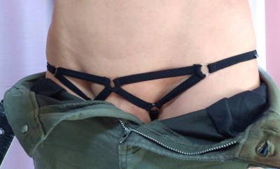今日は出かけるので、このセクシー下着から男性器を出しながら歩くのが楽しみです。