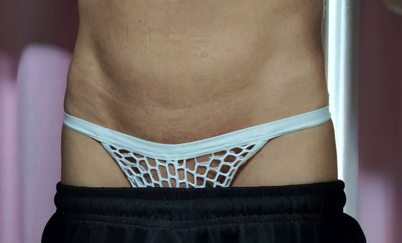 昨日はお出かけをして食べ過ぎてしまったので、今日はジムに行く予定です。ヒモパンでもなんとかウェアの前を目立たせなくできるようになってきましたが、今日はこれにしました。