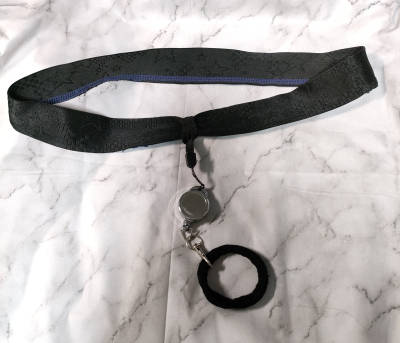 腰ベルトにリールホルダーを付けて、その先に髪留めゴムをつけて、そのゴムを男性器に通しています。かなりアブナイセクシー下着が完成しました。(下着ってなんだろう)