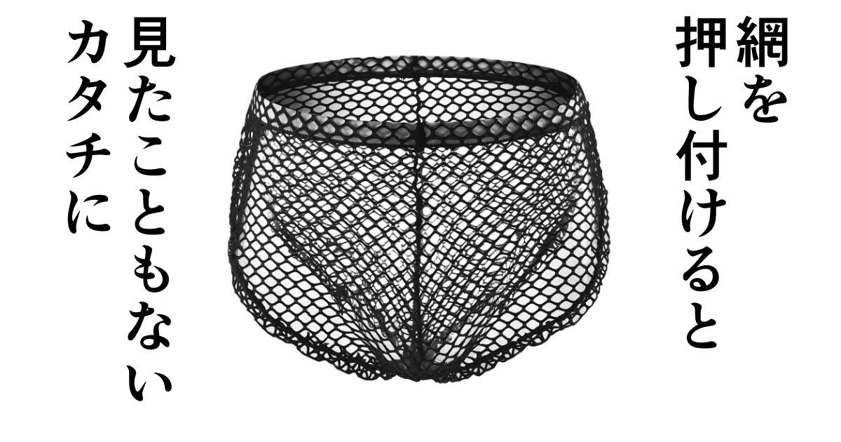 それに加えて、男性器周りが網で囲まれているのもビジュアル的にとてもえっちですし、元気になったちん〇んに網を押し付けると今まで見たこともないような形に・・・ちん〇ん、か、かわいい